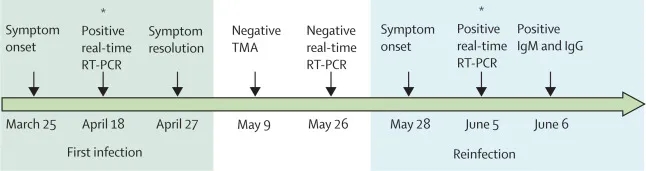 ▲该名患者两次发病、检测的时间过程(图片来源:参考资料[1])